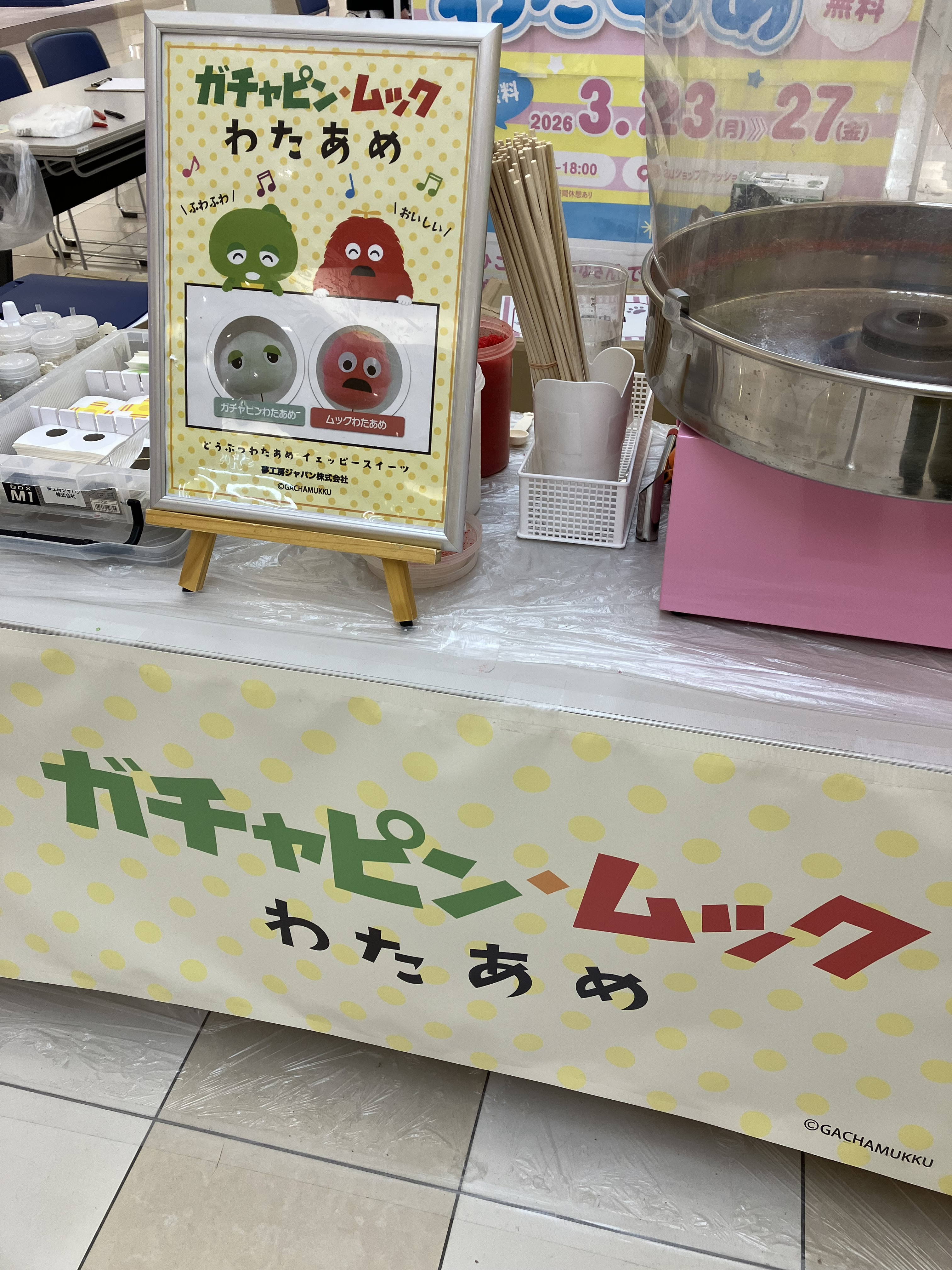 【ガチャピン、ムック集客わたあめイベント実施中】